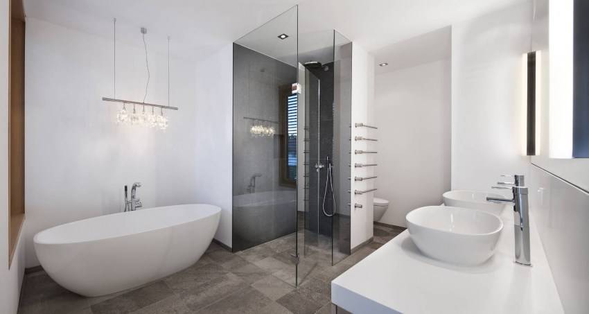 Дизайн подбирается в зависимости от стиля других изделий (полотенцесушитель, ванна, радиаторы), а количество – в зависимости от площади помещения и мощности ламп.