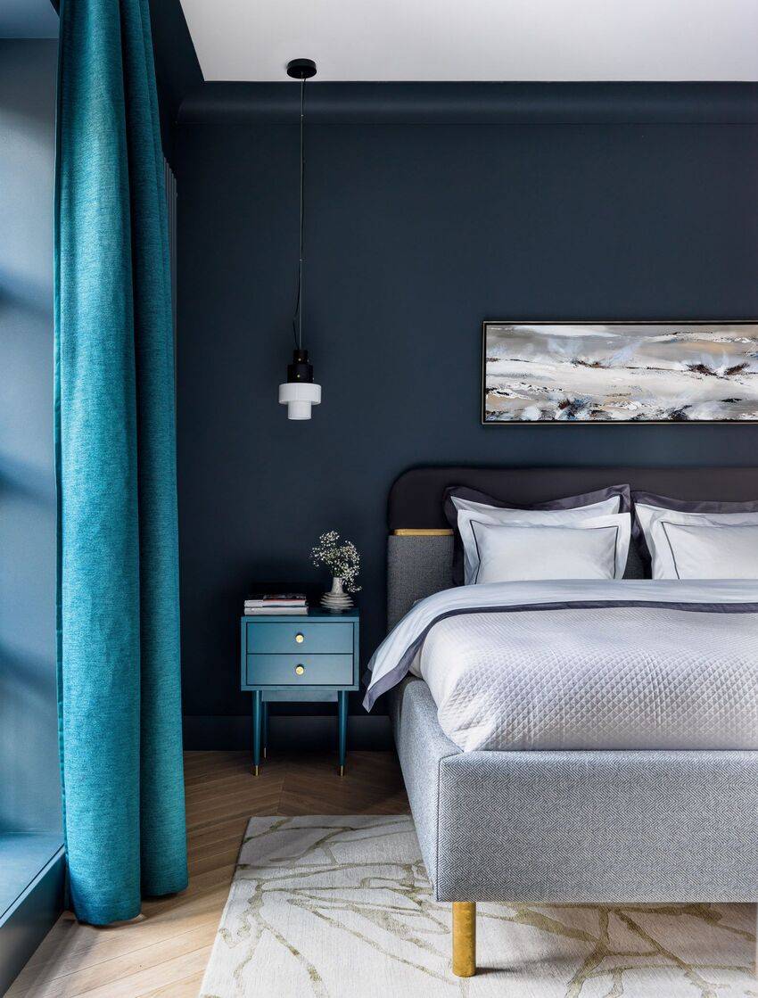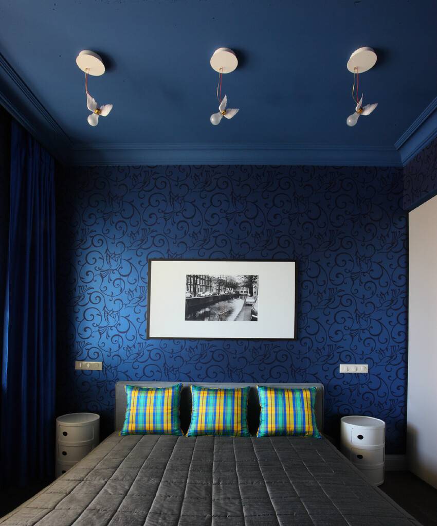 Необязательно, чтобы стены были нейтральных тонов. Темно-синие тоже имеют право на жизнь