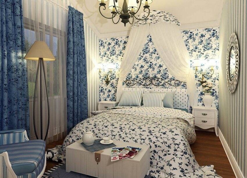 Прованс предусматривает цветочные атрибуты, узоры, оборки.