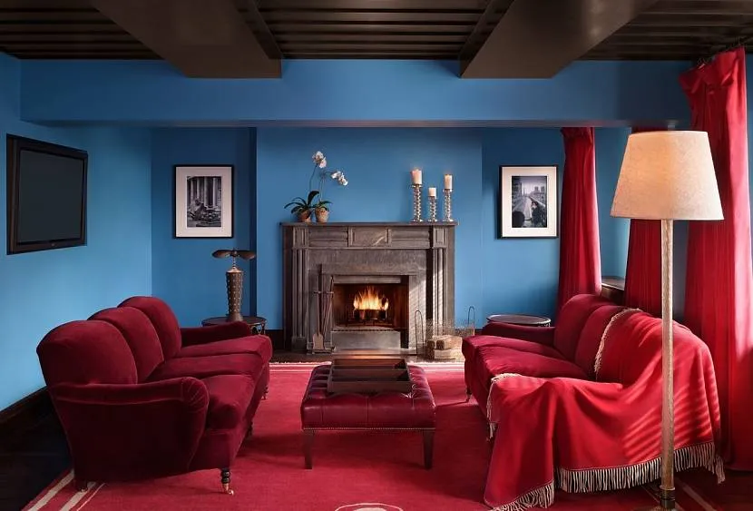 Синий и красный не подходит для спальни или детской, но отлично смотрится на домашнем рабочем месте (в кабинете). Часто применяется подобная комбинация в игровой детской комнате. Но в этом случае лучше использовать меньше красного, но больше синего.