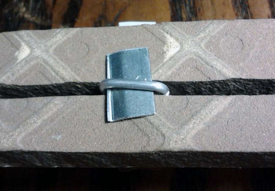 Алюминиевый провод сгибают так, чтобы образовался прямоугольник вытянутой формы. Затем монтируют пластину для упора. Нижние части проволоки, которые будут располагаться ниже плоскости плиточного материала, «надкусываются» с двух сторон. Данная процедура необходима для того, чтобы в дальнейшем было легче ее обломать.