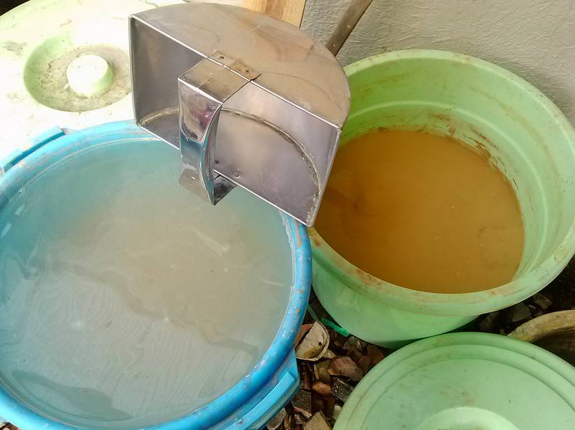 - Перед тем, как сделать раствор для штукатурки, глинозем укладывают в емкость и добавляют воду, а затем оставляют на 4-5 часов.