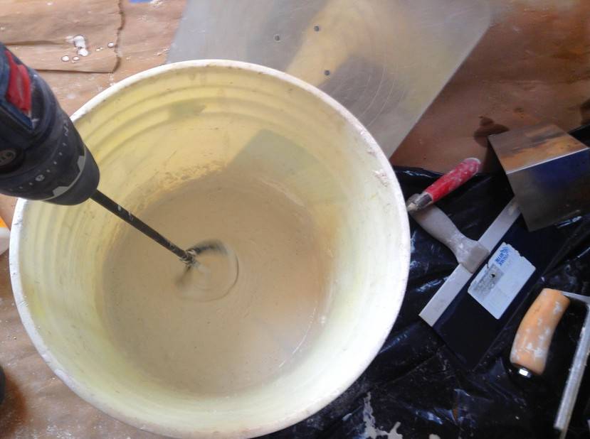 При желании раствор вы всегда сможете размешать в лотке или в ведре – в работе поможет дрель, на которую установили миксерную насадку. Но этот способ нельзя назвать очень продуктивным, ведь раствора для работы требуется много.