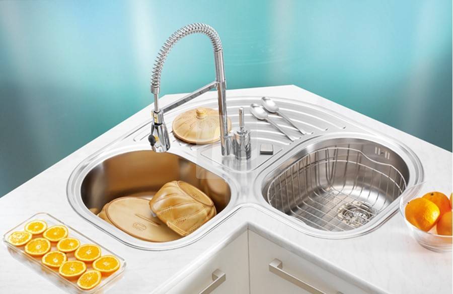 Как уже говорилось, изливы смесителей имеют различную высоту. Для низкого расположения сопла подойдет глубокая мойка, в противном случае заполнить водой высокую посуду большого объема будет проблематично.