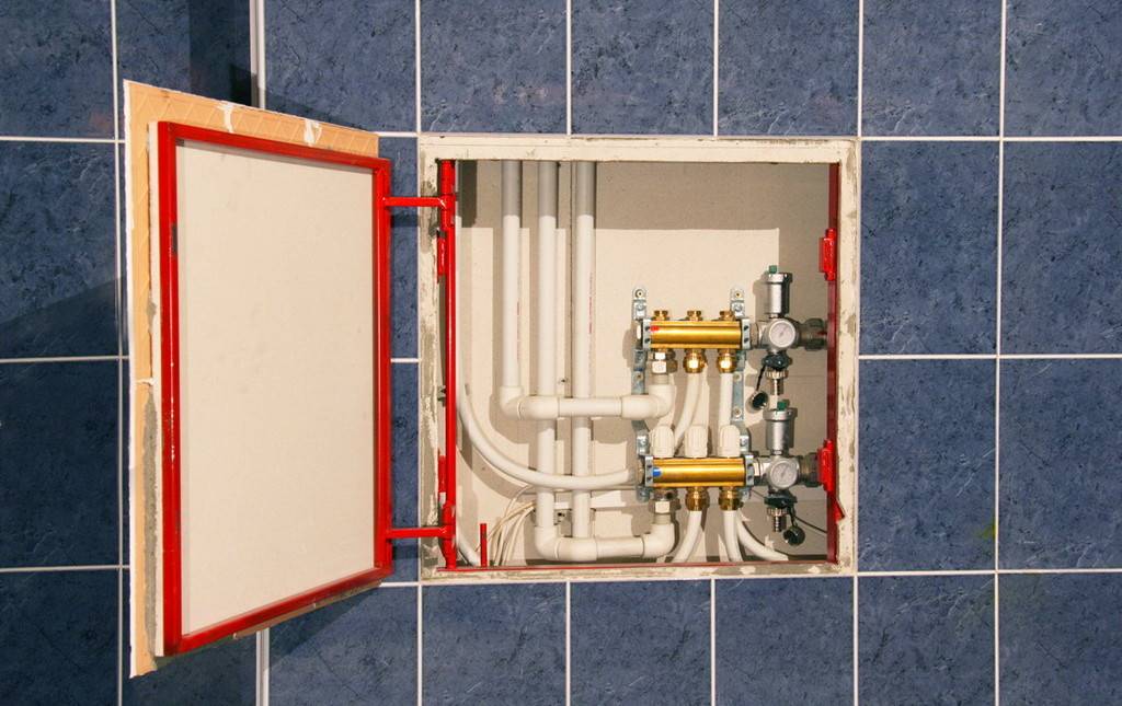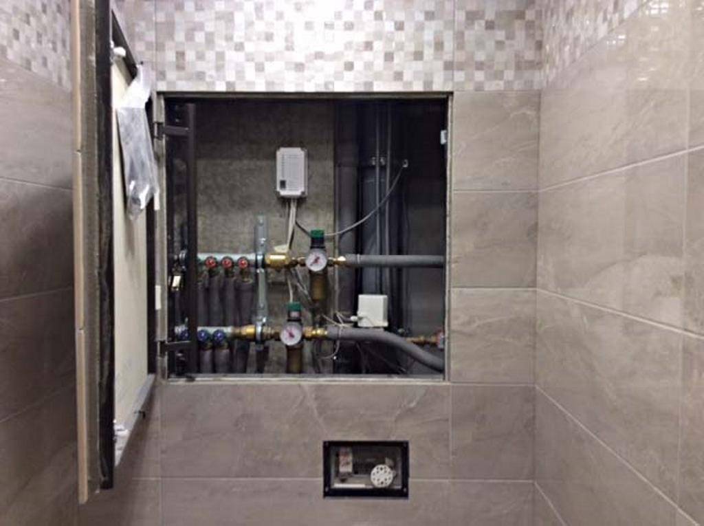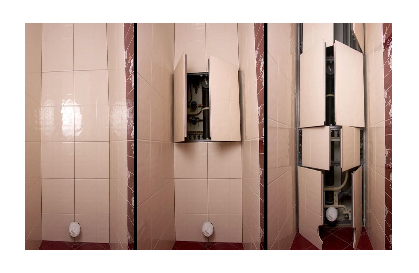 Выходом из подобного тупика как раз и является монтаж ревизионного люка. Для ванной и туалета это идеальный вариант. В закрытом состоянии люк маскирует все нежелательные для всеобщего обзора элементы, а при необходимости он позволяет с легкостью получить доступ к скрытыми элементами.