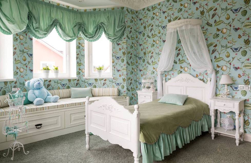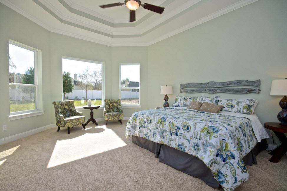 Обычно создают интерьер в светлых и пастельных тонах. Удачным выбором станут зеленый, бежевый, кремовый, мятный, голубой или белый цвета. Они способствуют расслаблению и настраивают на спокойный сон.