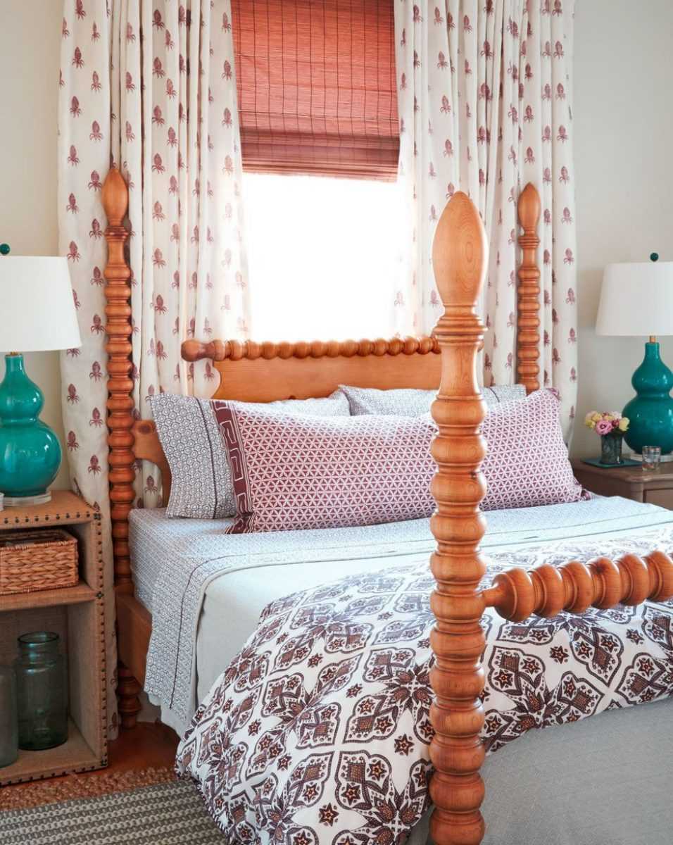 - Добавит опочивальне теплоту и уют некоторые деревянные элементы.