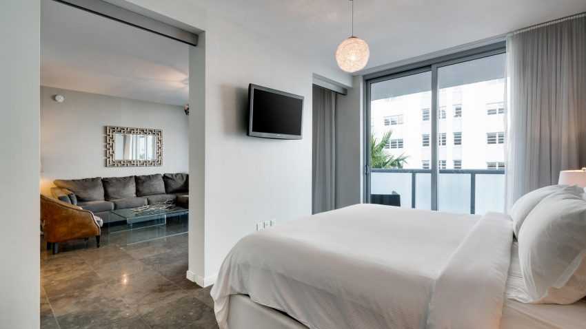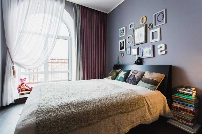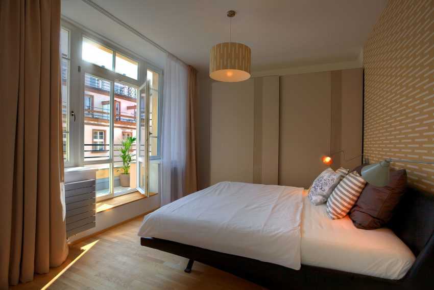 Если из спальни можно выйти на балкон или лоджию, то при выборе подходящего дизайна стоит на это ориентироваться. Конструкция занавесей должна давать возможность распахивать дверь и оставлять проход для человека. В этом может помочь удобный подхват или магнитный держатель.