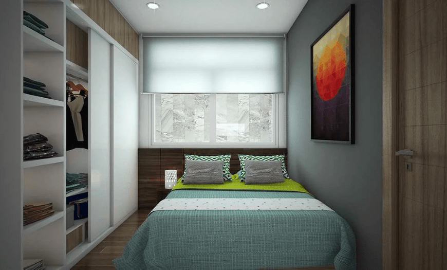 Зрительное увеличение пространства в узкой спальне