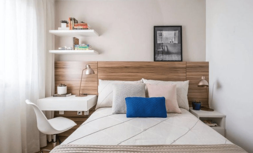 Чтобы выдержать в аккуратном виде интерьер маленькой спальни, нужно продумать, как будут укладываться необходимые предметы.