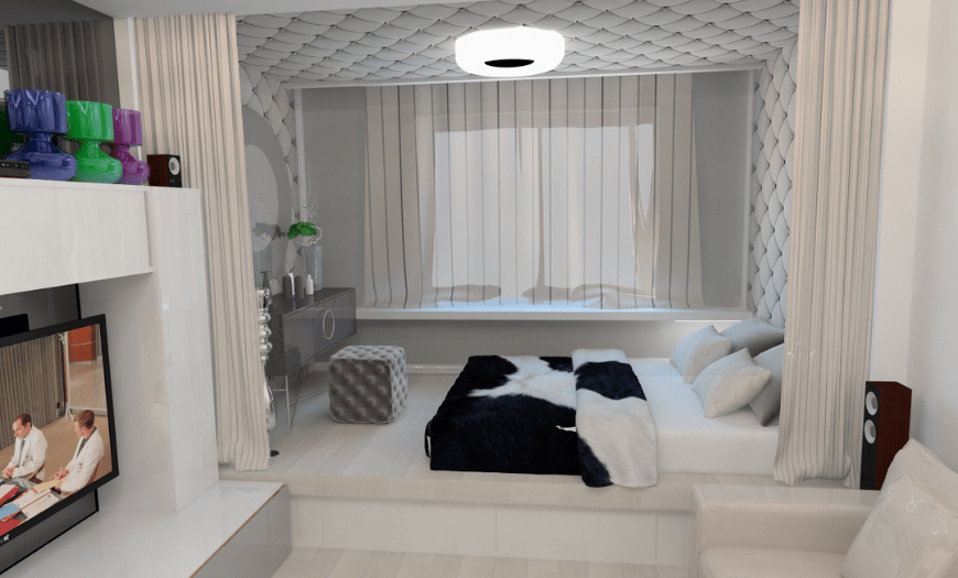 Использование легких тканей и отсутствие визуально утяжеляющих предметов позволит создать ощущение свободного пространства.
