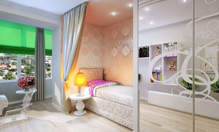 Совмещение маленькой спальни с балконом или лоджией
