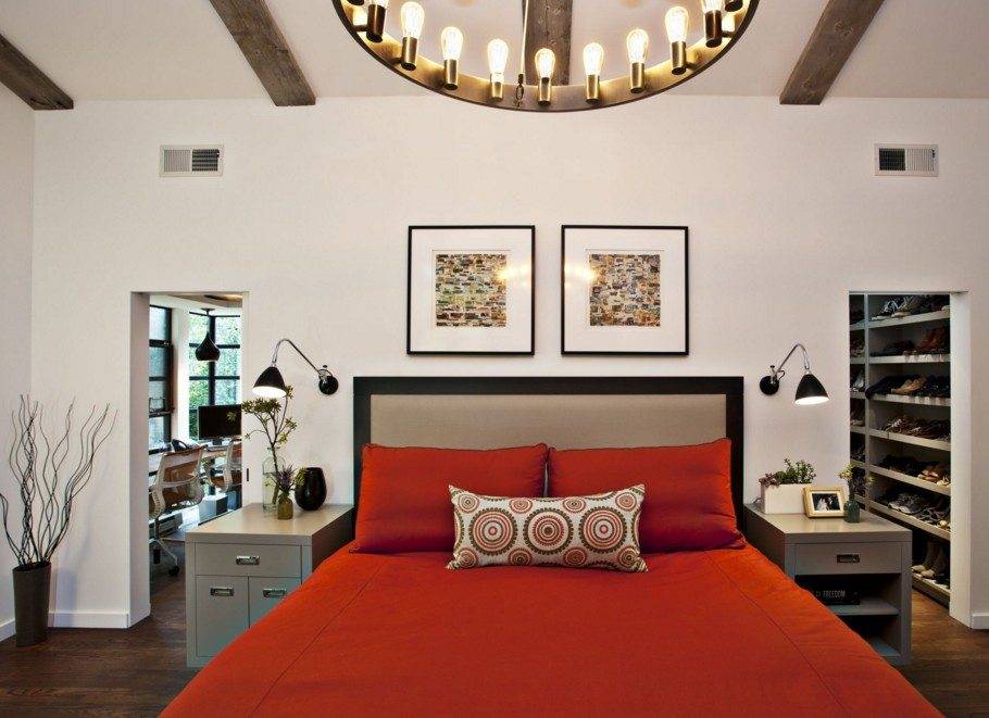 Настенное и потолочное освещение современной спальни