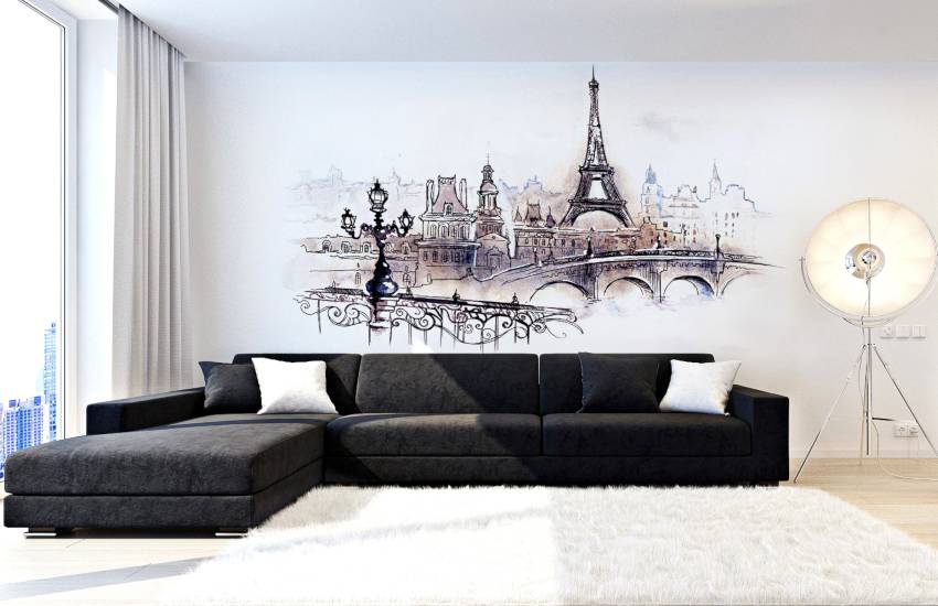 На стены можно повесить постеры, картины современных художников, например, с абстракциями или фотографии в однотонных рамках.