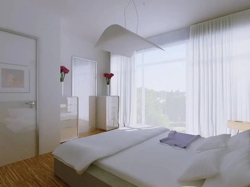 - отсутствие штор на окнах — еще одно правило минимализма, но если в этом случае хозяева спальни чувствуют себя не комфортно, то лучше выбирать самые простые и незаметные ткани, создающие впечатление невесомости. Таким образом вы визуально сможете расширить пространство;
