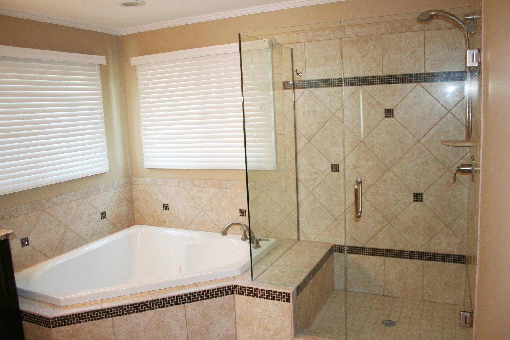 Раздвижной тип стеклянных шторок полноценно заменяет душевую кабинку.