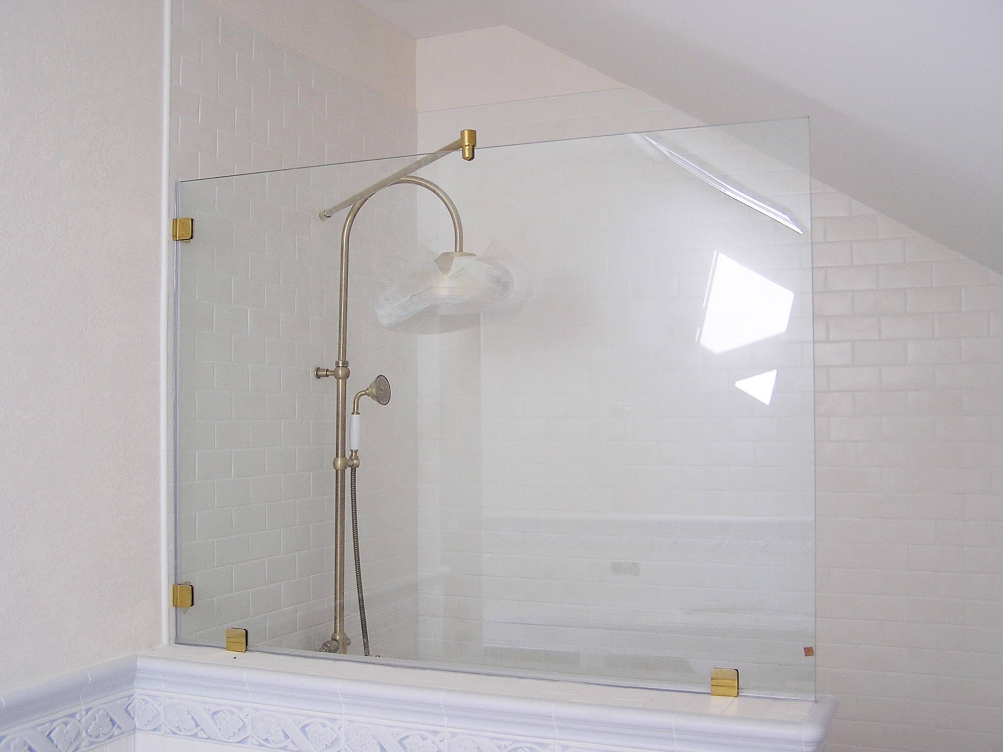 Один из проемов такой перегородки остается открытым при приеме душа. Фиксированные изделия с открытым сегментом подходят людям, которые чувствуют себя неуютно в замкнутом пространстве. Ограждающий экран располагается в той части ванны, где активно разбрызгиваются капли.