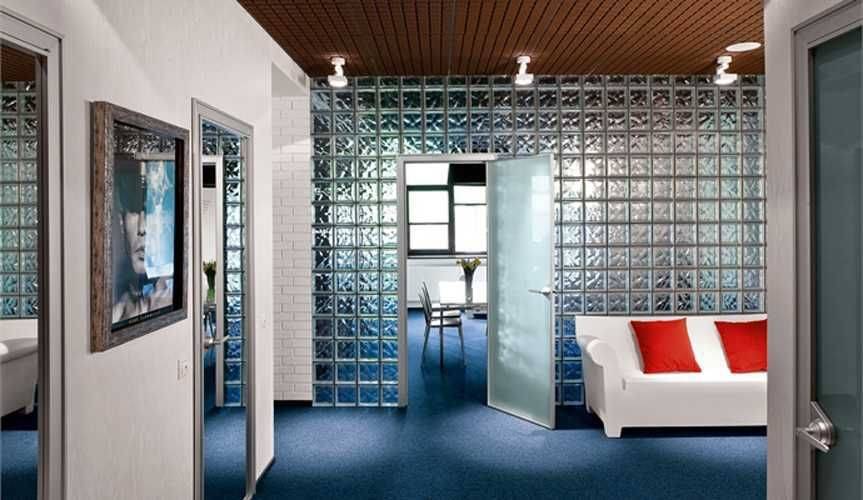 - Отличаются особой прочностью. Перегородку из стеклоблоков можно сравнить с кирпичной — она простоит не один десяток лет.