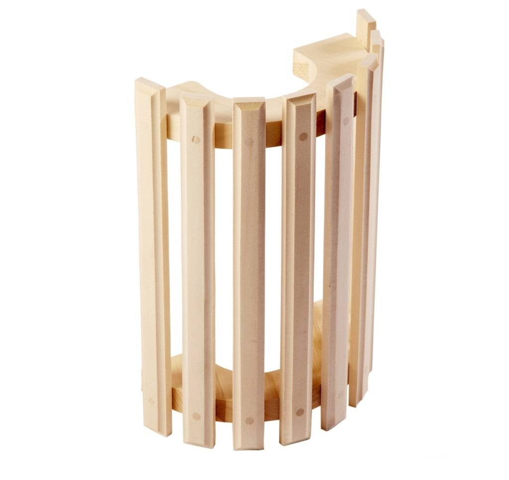 Такой абажур углового вида. Он используется, чтобы установить изделие в углу комнаты маленького размера. Он распределяет свет таким образом, чтобы был теплым и мягким свечение. Деревянный абажур имеет оригинальный внешний вид, который отлично дополнит интерьер в бане или в сауне, где он используется. Он занимает мало места и надежно защищает от нечаянного касания.