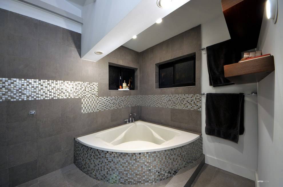 Угловые ванны нередко применяются для помещений с маленькими габаритами. В этом случае нужно подойти к вопросу освещения с большой ответственностью. Осветительные устройства выбираются с небольшими габаритами, однако предварительно проверяется подача света. Он должен рассеиваться, плавно распространяясь на все необходимое пространство.