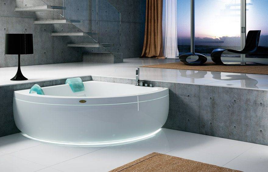 Угловые ванны были спроектированы так, что их две стороны примыкают к стенам. Обычно они имеют пять сторон, но сам бассейн является треугольником. Часто вы сталкиваетесь с большим количеством применяемых материалов и даже той же модели. Кроме того, дополнительные удобства, которые делают все более комфортным, не являются редкостью.