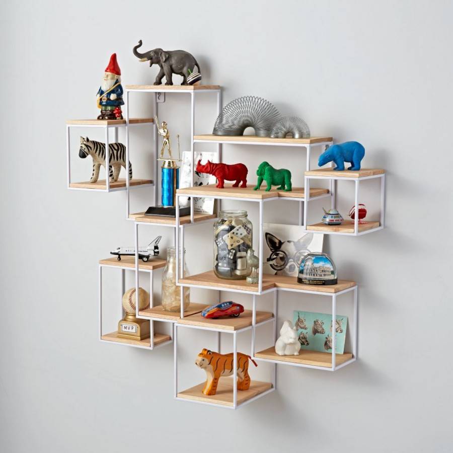 В современных интерьерах уместно использование лаконичных полок с простыми геометрическими формами