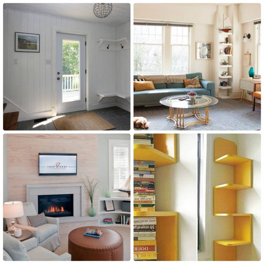 Для того, чтобы оценить, насколько эффектно могут смотреться угловые полки на стенах в комнате, фото некоторых удачных интерьеров предлагаются вашему вниманию.