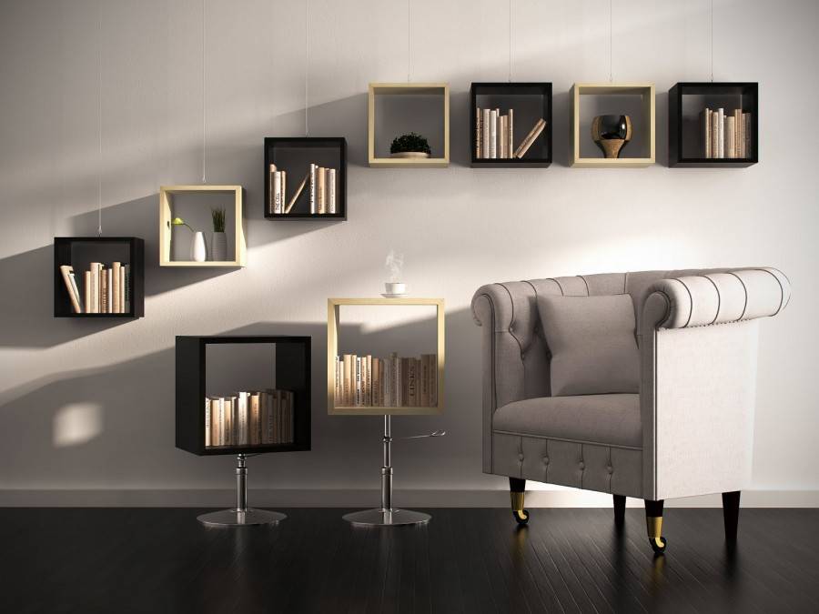 Книжной полкой-невидимкой – вам потребуется несколько стальных кронштейнов, на которые и размещаются книги. Смотря на такую конструкцию, кажется, что книги просто парят в воздухе.