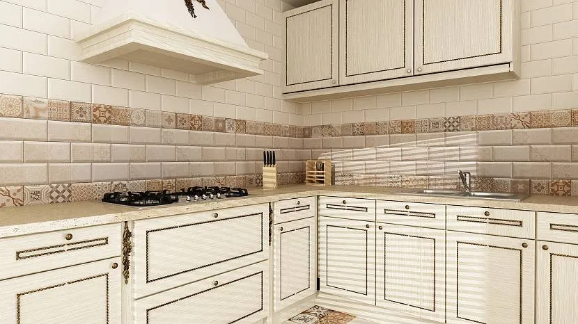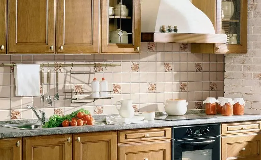 Удобно приобрести плитку средних размеров с отверстиями под «кабанчик». Ее намного проще стелить, чем мелкую. Монтаж под силу даже новичку, решившему оформить кухню самостоятельно.