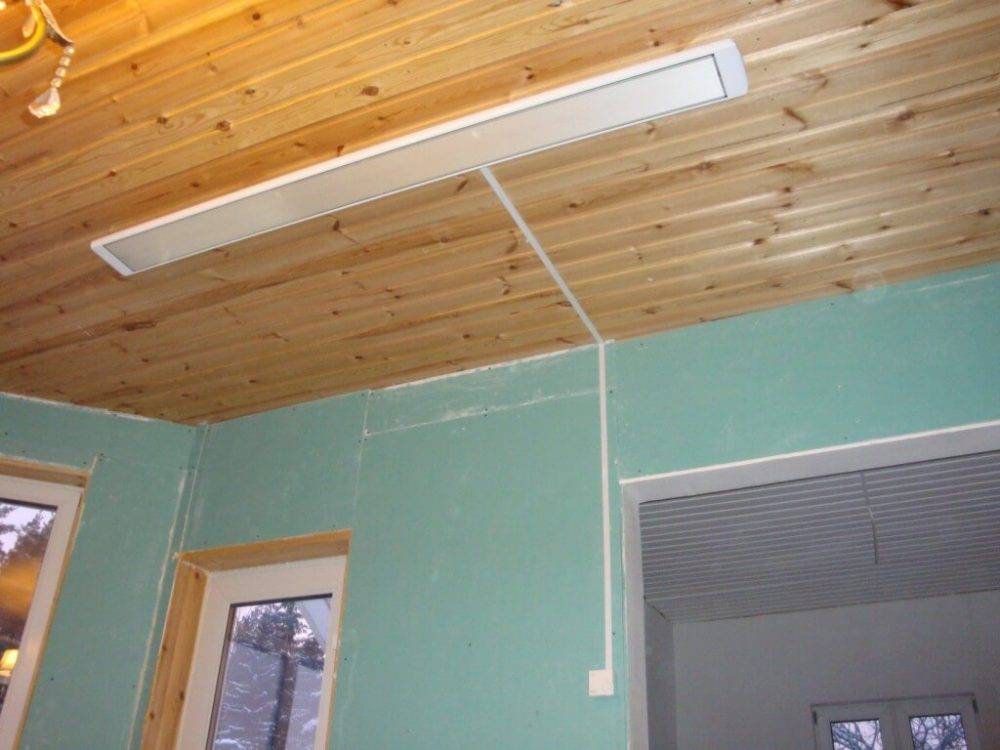 Когда осуществляется установка инфракрасных обогревателей своими руками, нужно чтобы расстояние между потолком и корпусом было не менее 3 миллиметров. В загородных домах панели выносят наружу для обогрева внешнего пространства, к примеру, летней кухни. В таких случаях, для увеличения эффективности необходимо подложить под корпус теплоизоляционный материал или фольгу.