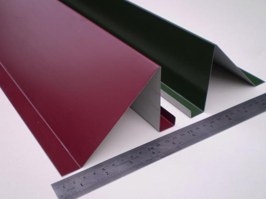 На следующем этапе заготовку нужно закрепить на рабочем столе. Используя листогиб, следует по линиям разметки согнуть изделие. В результате должен получиться уголок с двумя полочками для крепежа, высота которого составляет 15-20 см. Для фиксации снегозадержателя будут использоваться саморезы. Под них в крепежных полочках следует выполнять отверстия.