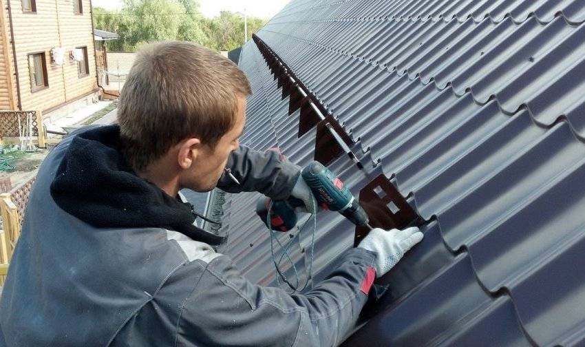- На скате при помощи саморезов со специальными пресс-шляпками крепятся кронштейны, при этом между соседними изделиями выдерживается шаг в 0.5 м. Количество элементов определяют с учётом ската крыши – чем он круче, тем больше потребуется кронштейнов.