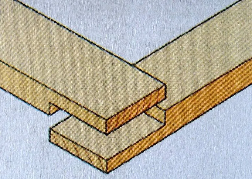 Также на ровной плоскости, или на выставленных в одной горизонтальной плоскости кирпичах или блоках их собирают в каркас. Единственное отличие – соединение и крепление. Для этого концы стыкуемых элементов придется подготовить. То есть создать соединение – в пол доски. На фото ниже этот способ показан