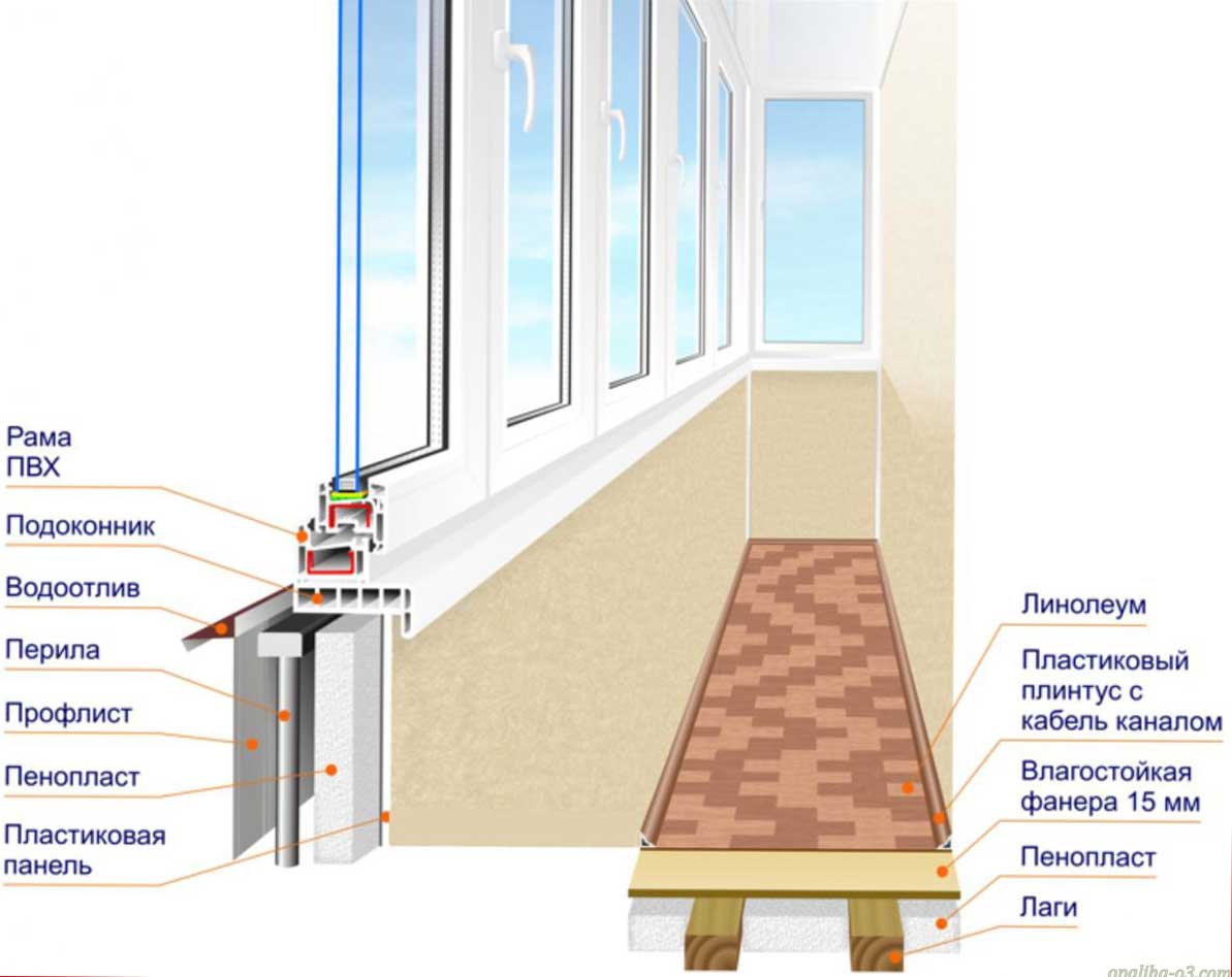 Схема обустройства балкона и его утепления