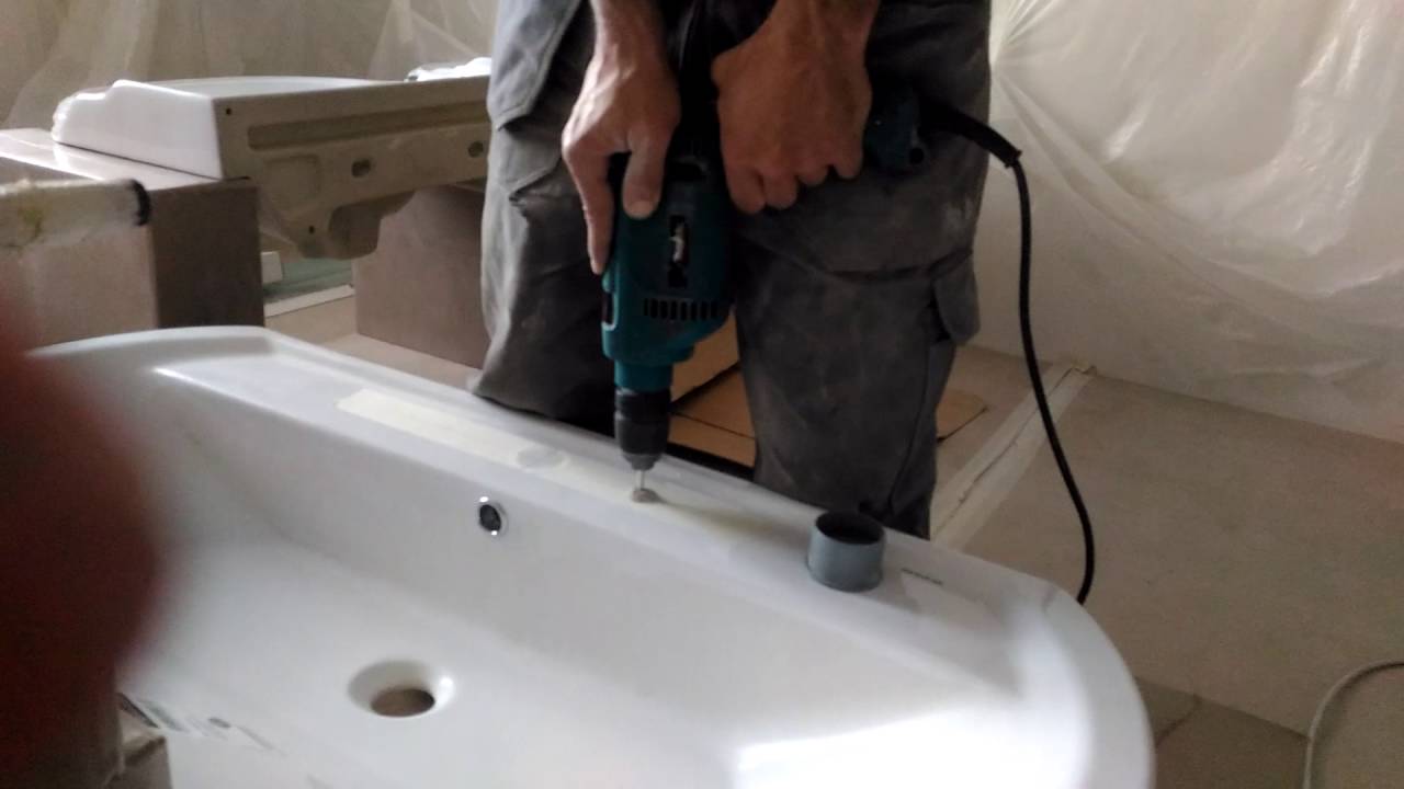 При формировании отверстий стоит соблюдать осторожность. Неточность в расчетах приводит к ухудшению внешнего вида сантехнического прибора