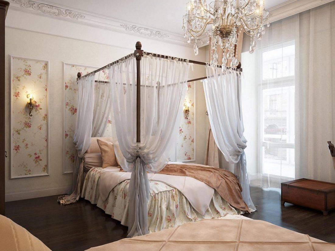 Здесь будет уместно использовать множество небольших подушек, оборок, ажурных кружев. Их можно разместить даже на мебели для придания ей особого настроения. Зеркало – деталь, которая обычно присутствует в спальне, чтобы хозяйка могла примерять наряды прямо здесь. Старинные рамы обычно являются отдельным украшением интерьера. Это резные, позолоченные багеты, массивные или изящные. Само зеркало при этом имеет интересные переливы, потому что ранние технологии изготовления таких изделий отличаются от современных.