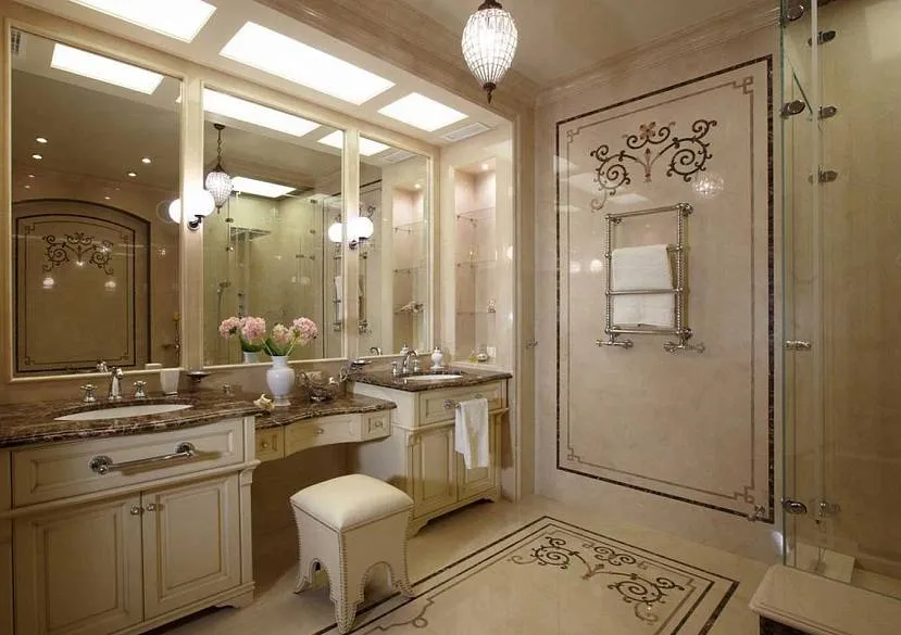 Для дизайна ванной комнаты в классическом стиле требуется: