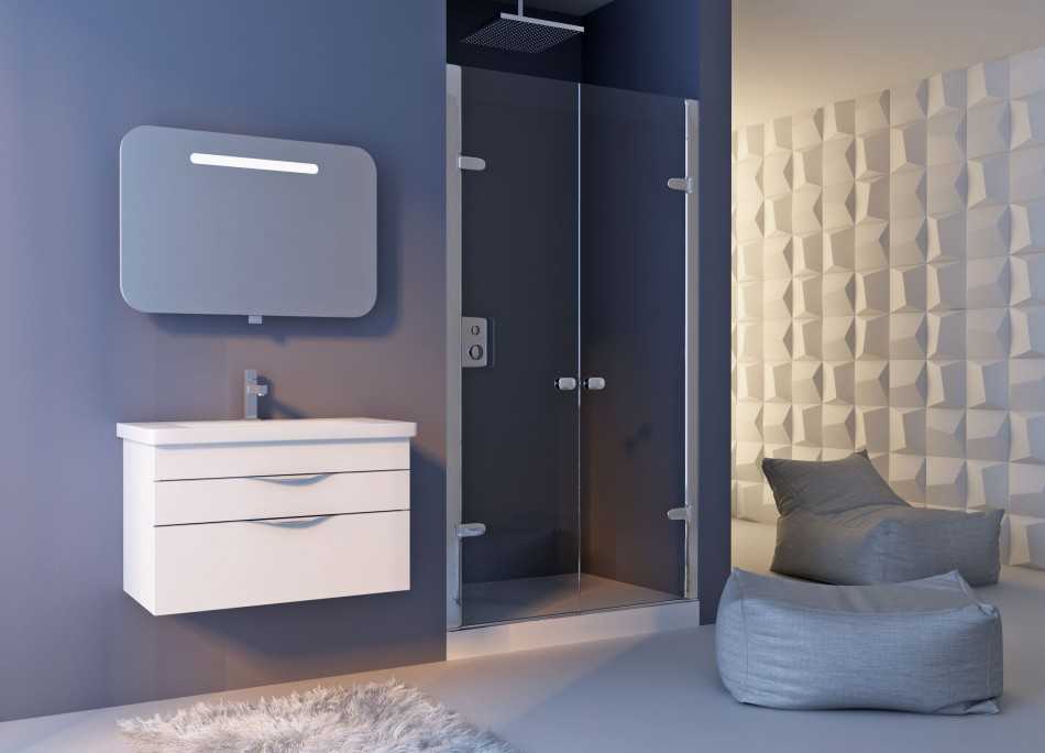 - Если комната не позволяет, отличная альтернатива – ванна с геометрической формой или современный стеклянный душ, предпочтительно с гидромассажем, радио.