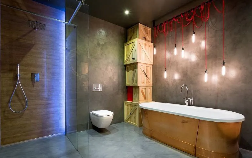 Стиль лофт в ванной: конструкции, сантехника, мебель, декор