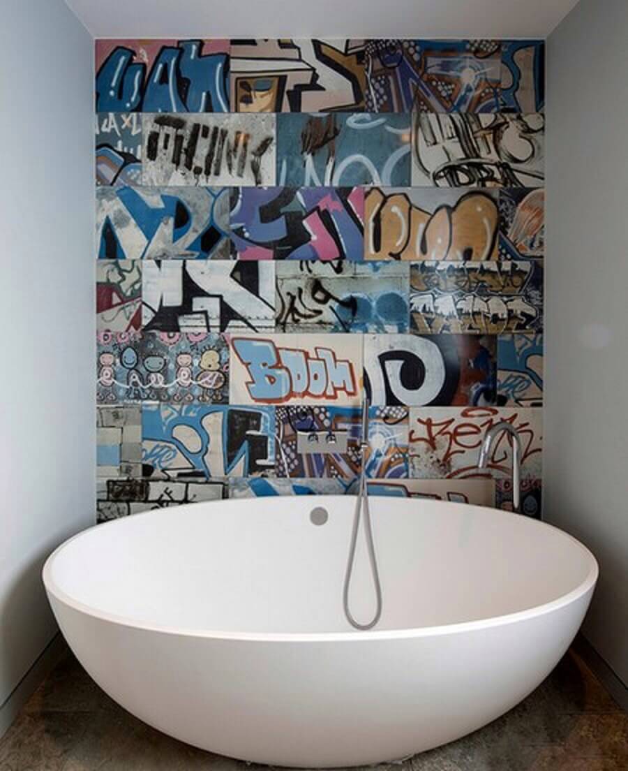 Немного узорной плитки в качестве красивого дополнения на полу и стенах оживит дизайн. И граффити найдется место.