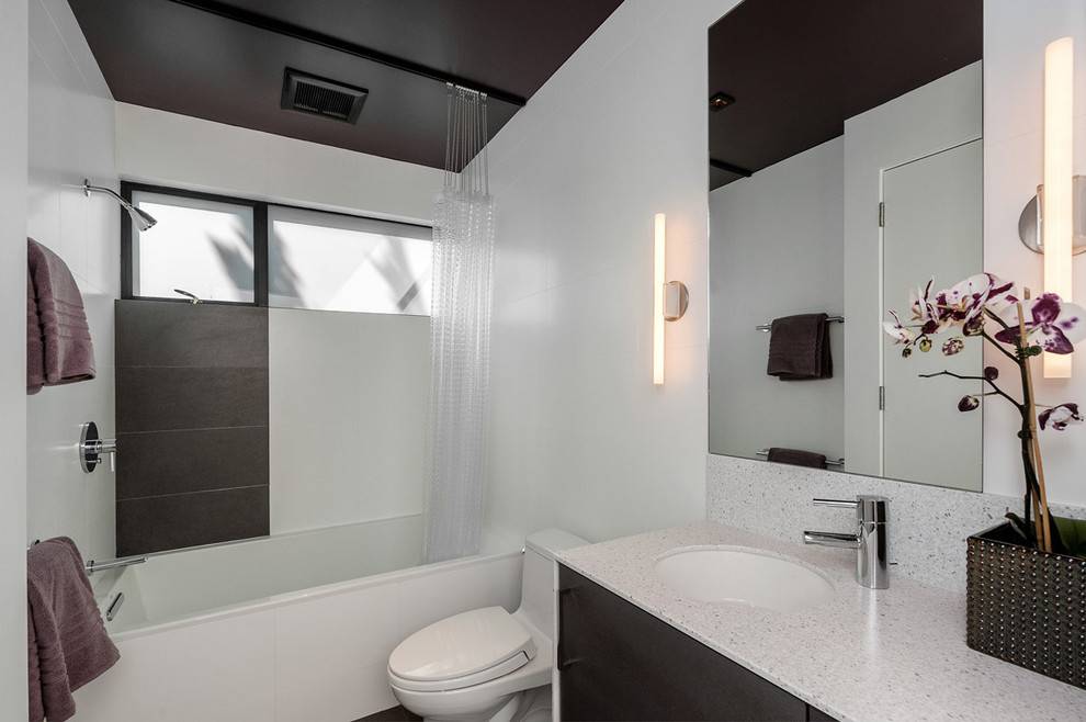 Гладкий белый потолок – основное направление дизайна ванной комнаты в 2017 году