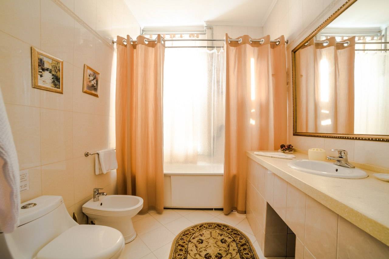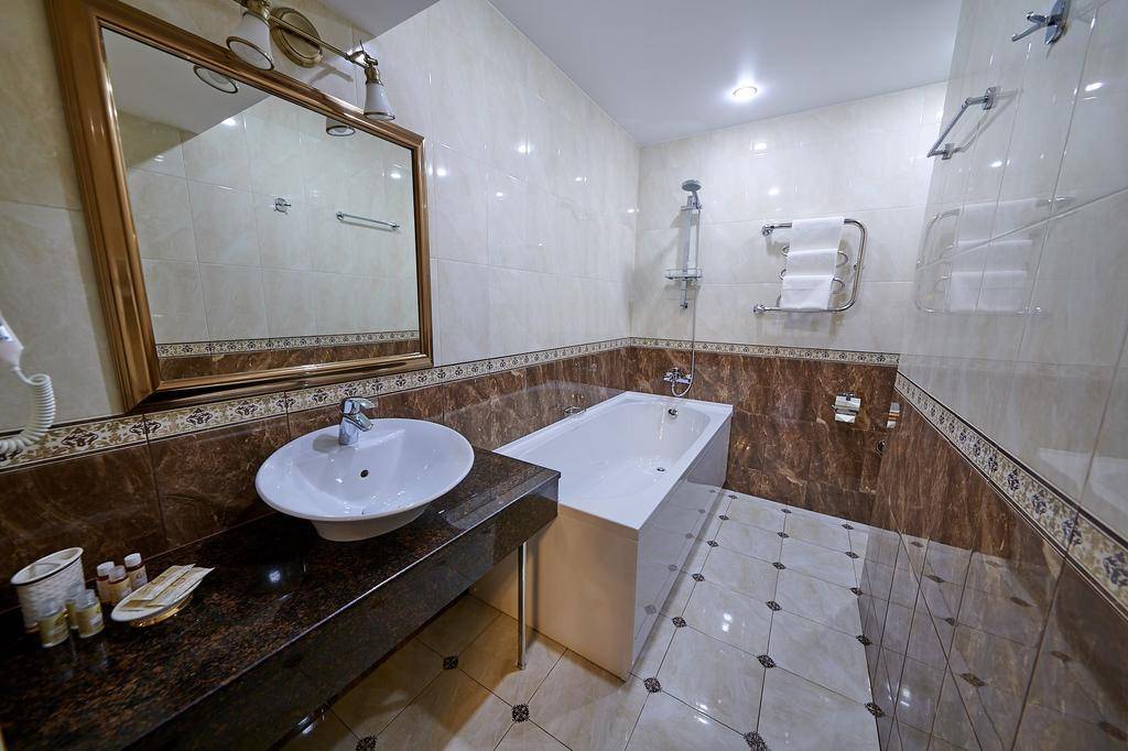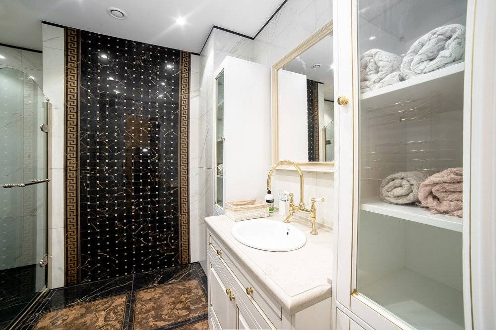 Обширные ванные комнаты позволяют устанавливать и ванну, и душевую кабину, и две раковины. Ростовое зеркало в ванной комнате позволит вам исследовать кожный покров и вовремя обнаружить какие-то отклонения.