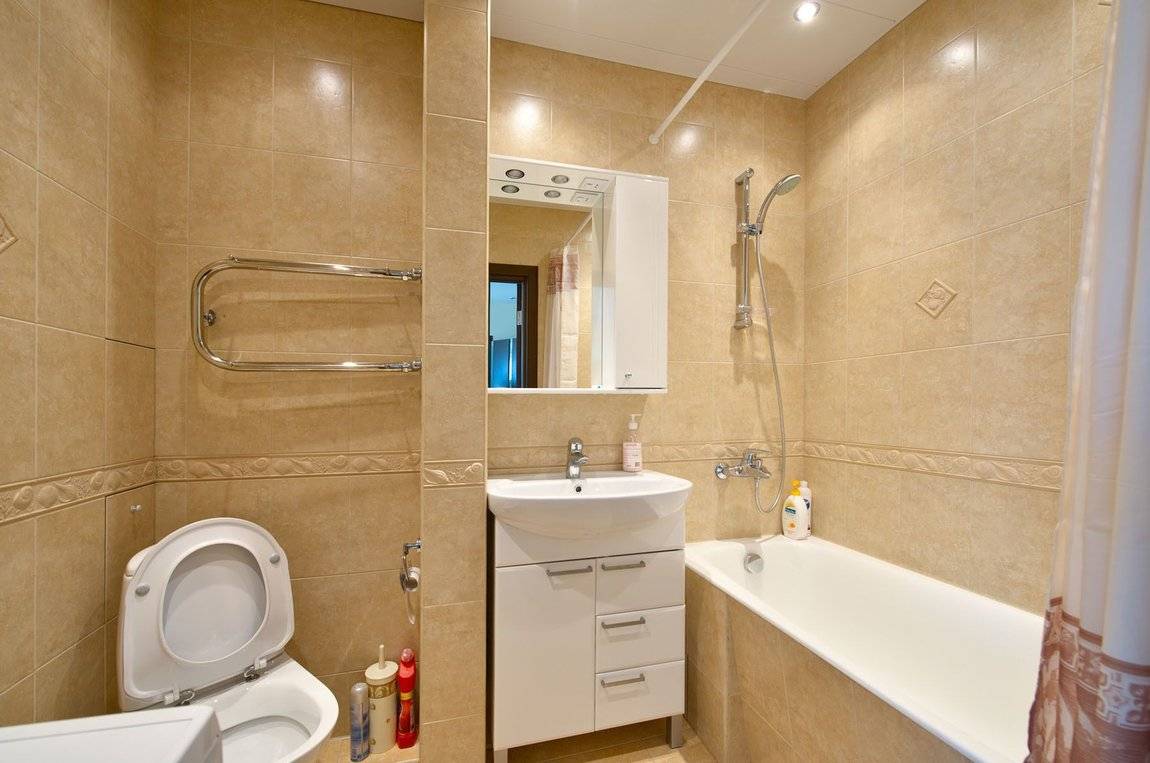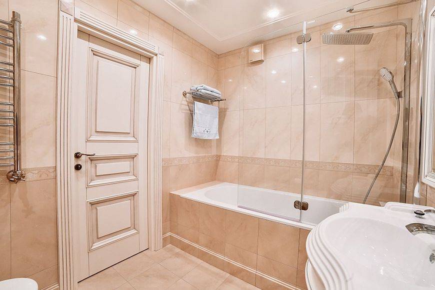 Бежевая ванная комната всегда очень теплая и уютная. Она успокаивает. В ней приятно расслабиться и отдохнуть.