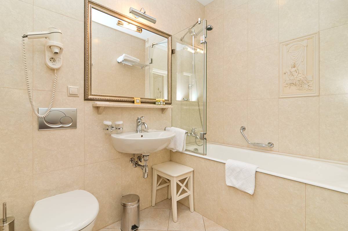 Спокойные, гармонирующие друг с другом цвета отделки стен и пола способствуют созданию уютной и при этом стильной обстановки. В оформлении классической ванной не может быть использованы слишком яркие и контрастные цвета, нарочито-грубые текстуры, а также мебель или сантехника, выполненные в ультрасовременном стиле. В таком интерьере всё выглядит стильно, элегантно, добротно и по-настоящему изысканно.