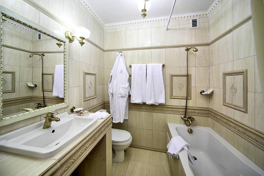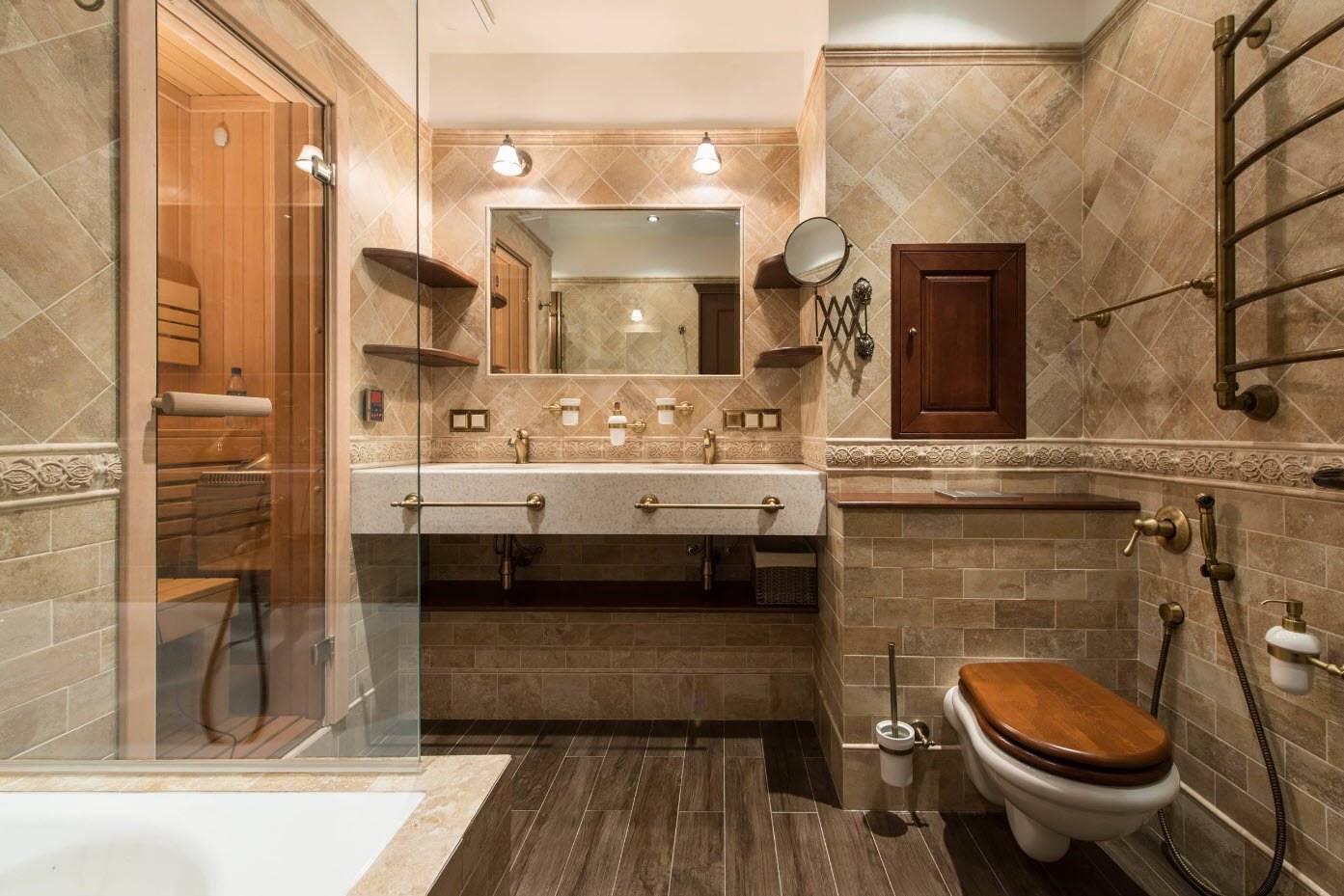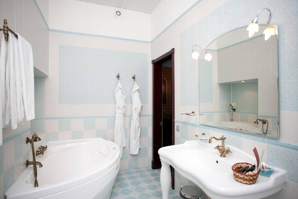 Удобная планировка. Классический стиль предполагает равномерное использование площади помещения, а потому санузел не выглядит слишком пустым или, наоборот, чрезмерно заполненным мебелью и сантехникой.