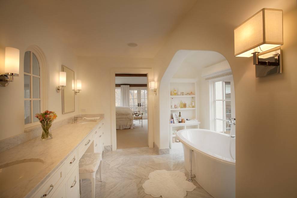 Фото 3. Окно в ванной комнате – роскошная деталь дизайна, увеличивающая комфорт и добавляющая «изюминку» в интерьер. Можно использовать также фальш-окна или даже картины с изображением окон.