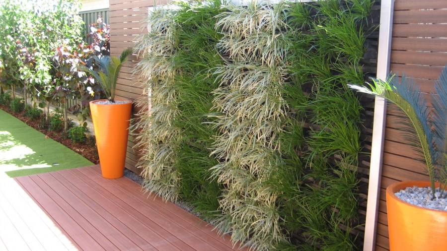 - Фон вертикальной клумбы должен быть выполнен в легких зеленых оттенках. Флористы советуют использовать в качестве декоративной стены для вертикальных клумб партерные газоны и живую изгородь.