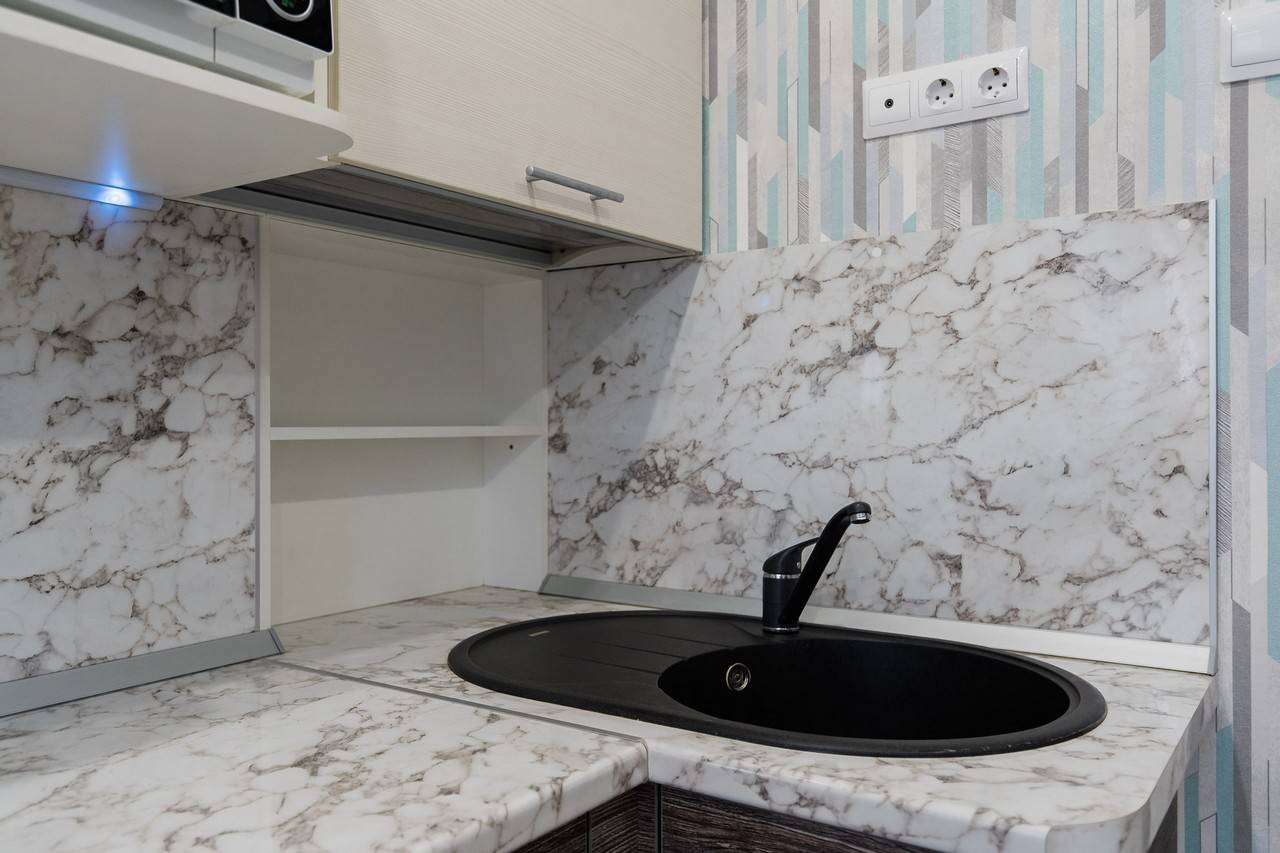 Отличным дизайнерским сочетанием будет столешница из мрамора и фартук в тон ей.