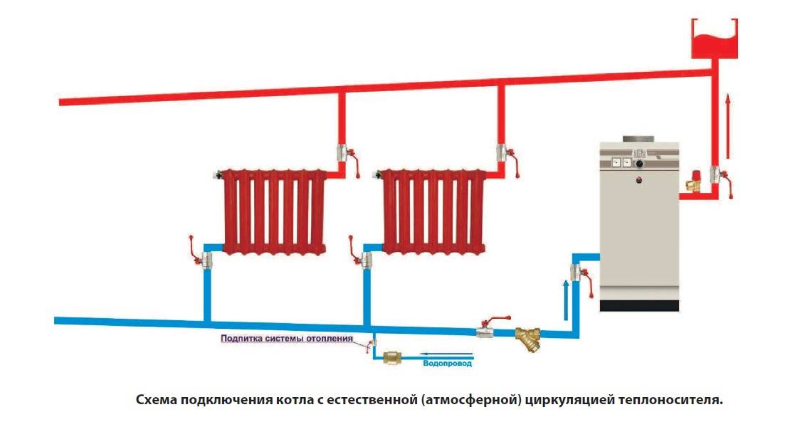 Атмосферный тип водяного отопления относится к системам с естественной циркуляцией жидкости, и для него не требуется установка дополнительных насосов.