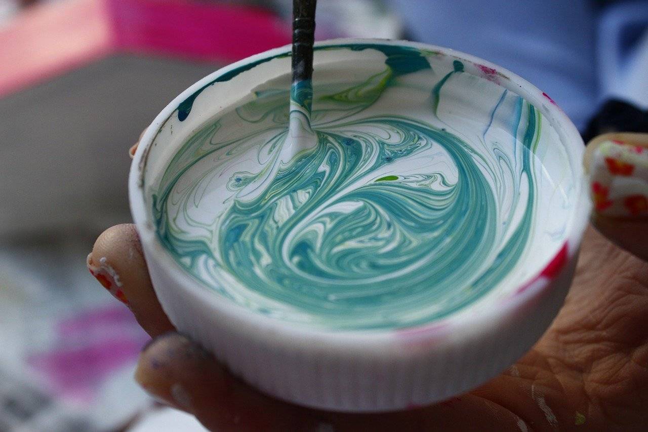 Удалить излишки акриловой водоэмульсионной краски легко обычной водой.